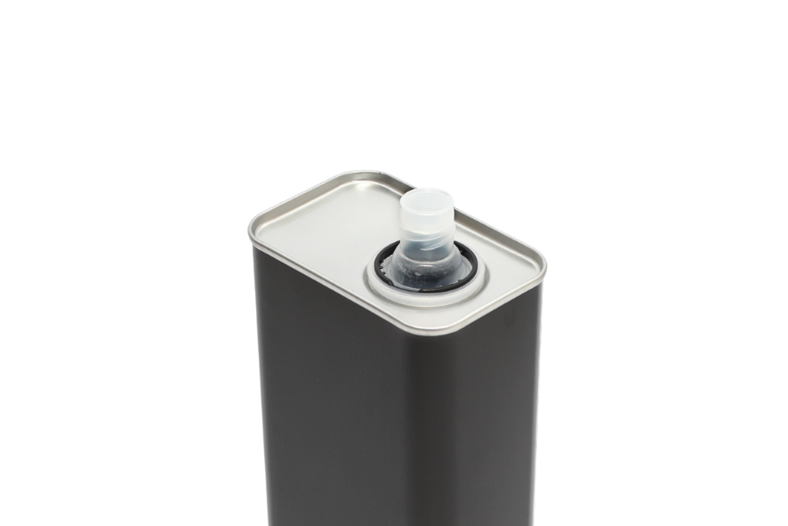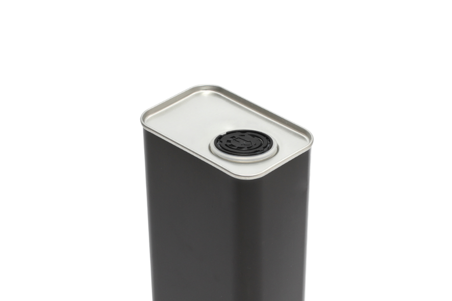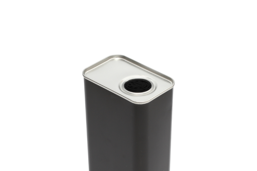 Lata rectangular con capacidad de 500 ml de color negro exterior para el envasado de cualquier tipo de aceite.